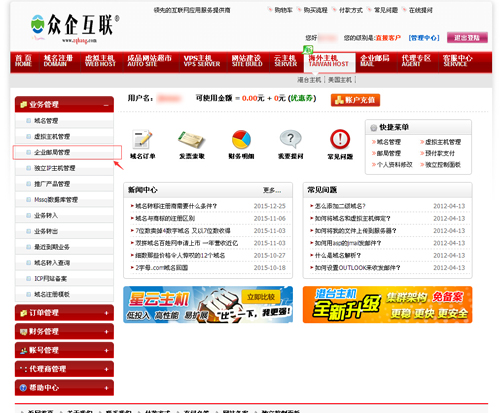 第一步,在www.zqhang.com登录企业管理后台,登录成功后点击企业邮局
