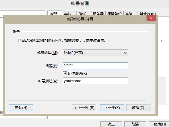 2.邮箱类型选择IMAP(推荐),输入邮箱密码点下一步