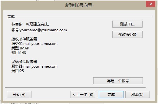 3.核对配置信息是否正确,不对的可以点修改服务器进行修改,正确的可以点测试按钮看配置是否能够收发邮件.